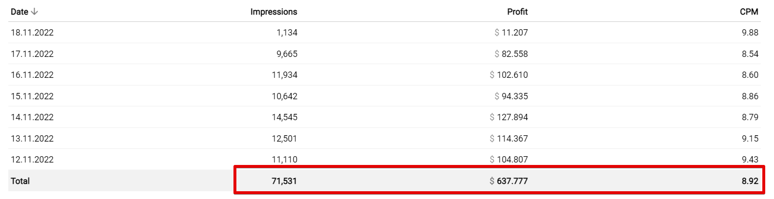 The results were nothing but stellar, surpassing the $10 CPM mark in the first week of receiving constant traffic.