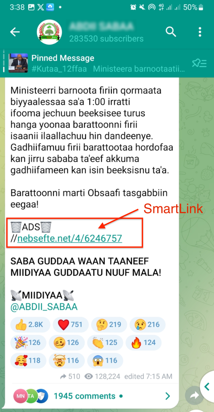 What our client did is he decided to place SmartLinks under each post on his Telegram channel. Here’s what it looks like: