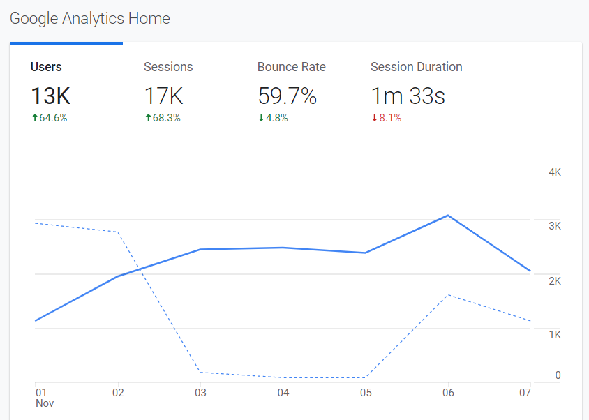 “Below, there’s also a screenshot of my Google Analytics stats for that time period.”